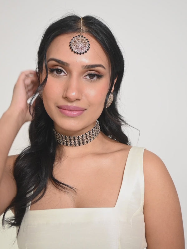 Jewelry Collection. Tikka and Earrings. Black & Champagne Stone Work.