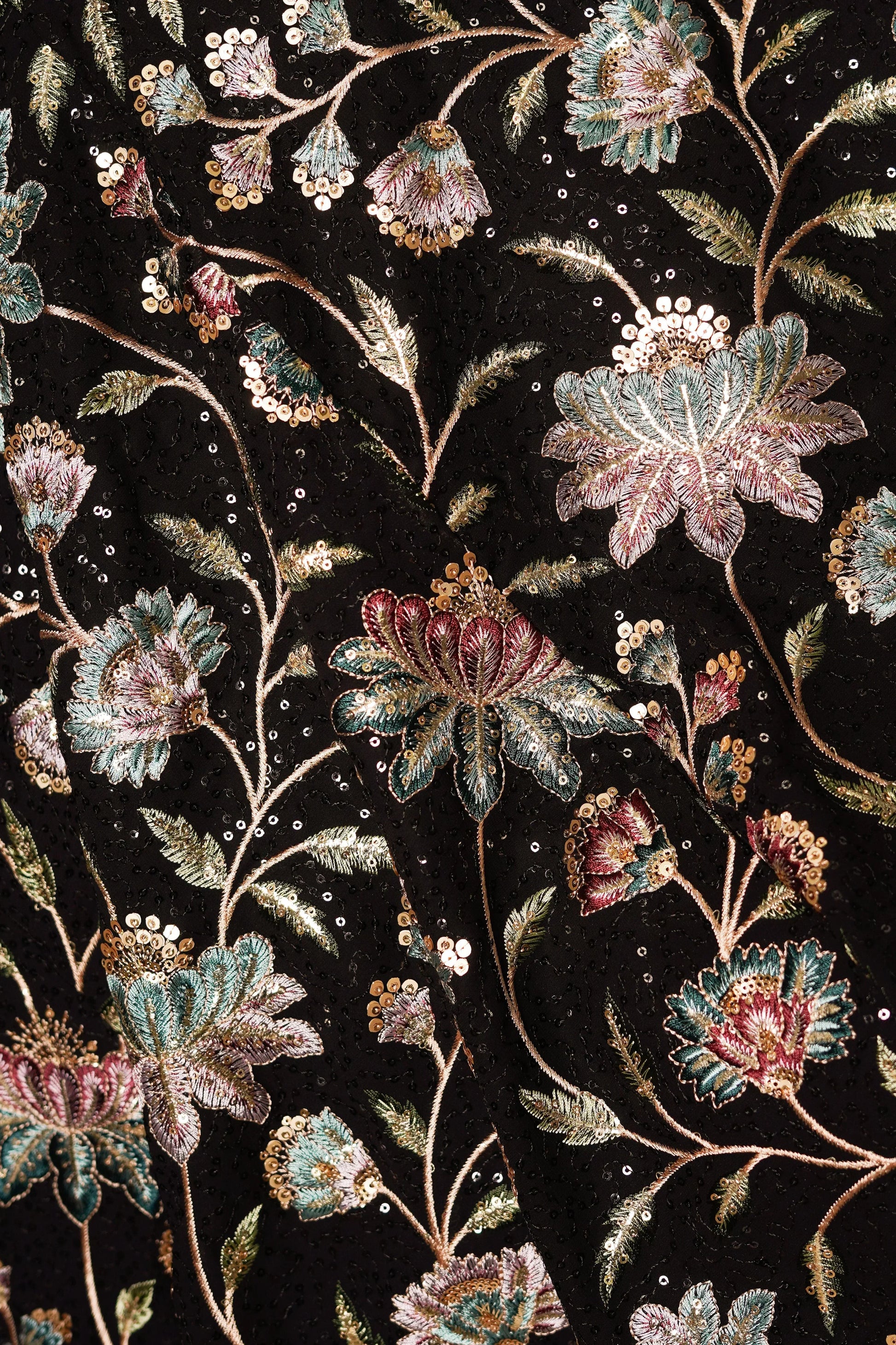 Georgette Composition. Sequins Embroidery. Closed Stitch Fabric Border.