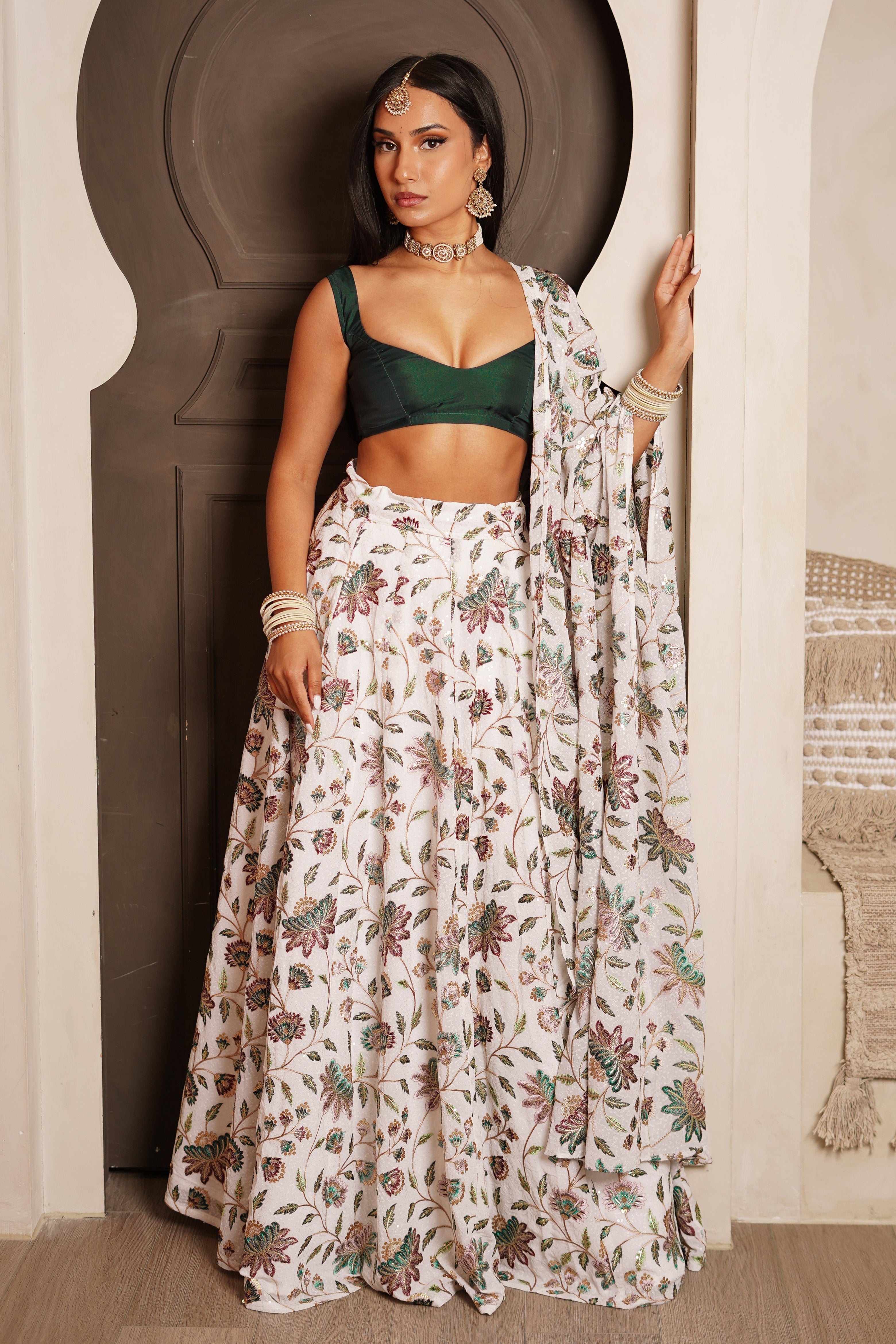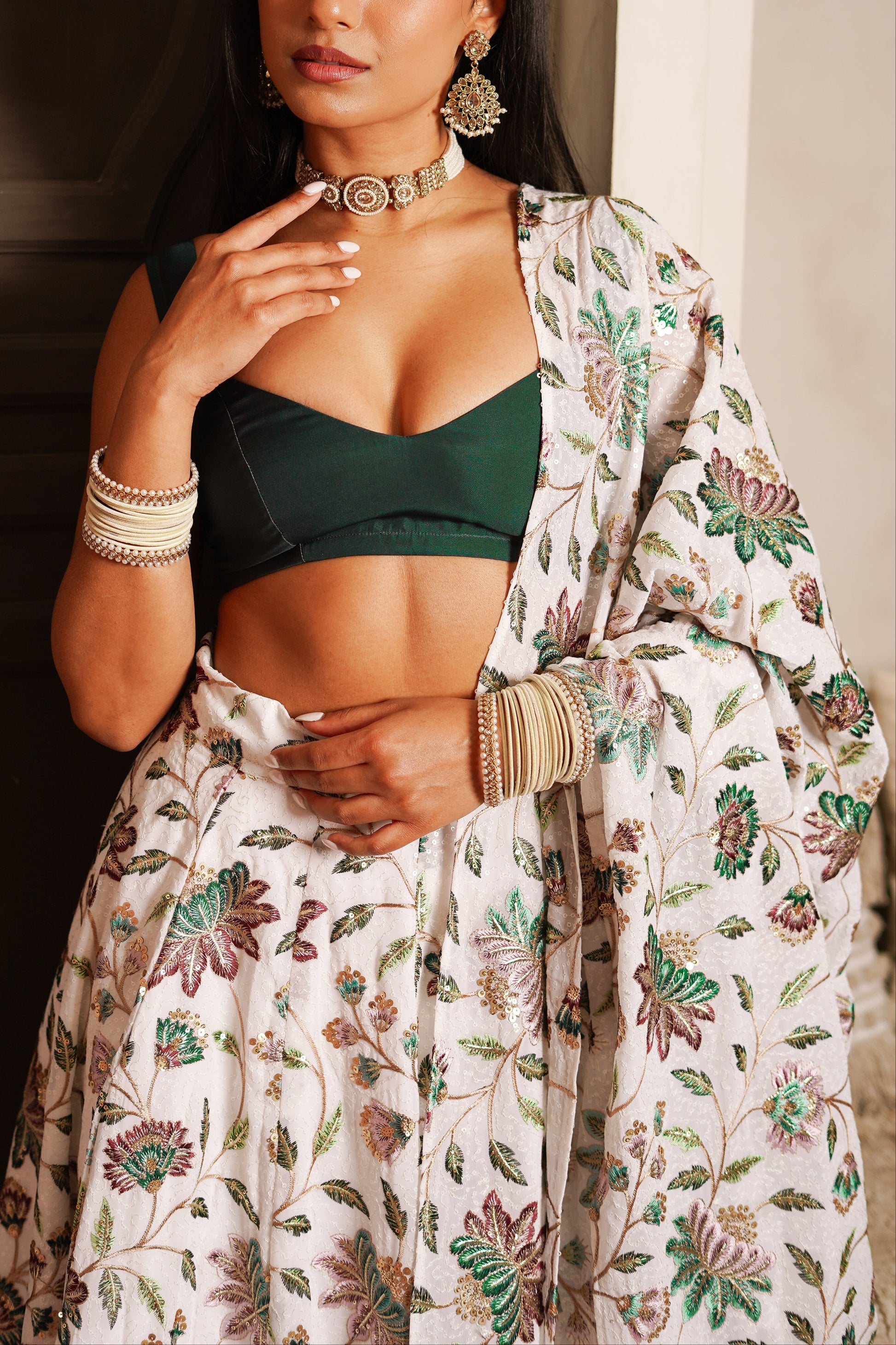The Blanche Lotus Dupatta is another stunning creation! With its striking blend of colors, it's sure to make you stand out wherever you go. The delicate sequin work and intricate thread detailing on the soft georgette fabric give it a luxurious feel that adds a touch of elegance to any outfit.