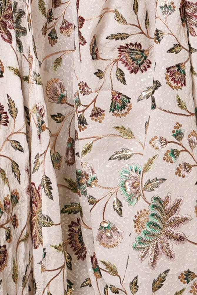 Georgette Composition. Sequins Embroidery. Closed Stitch Fabric Border.