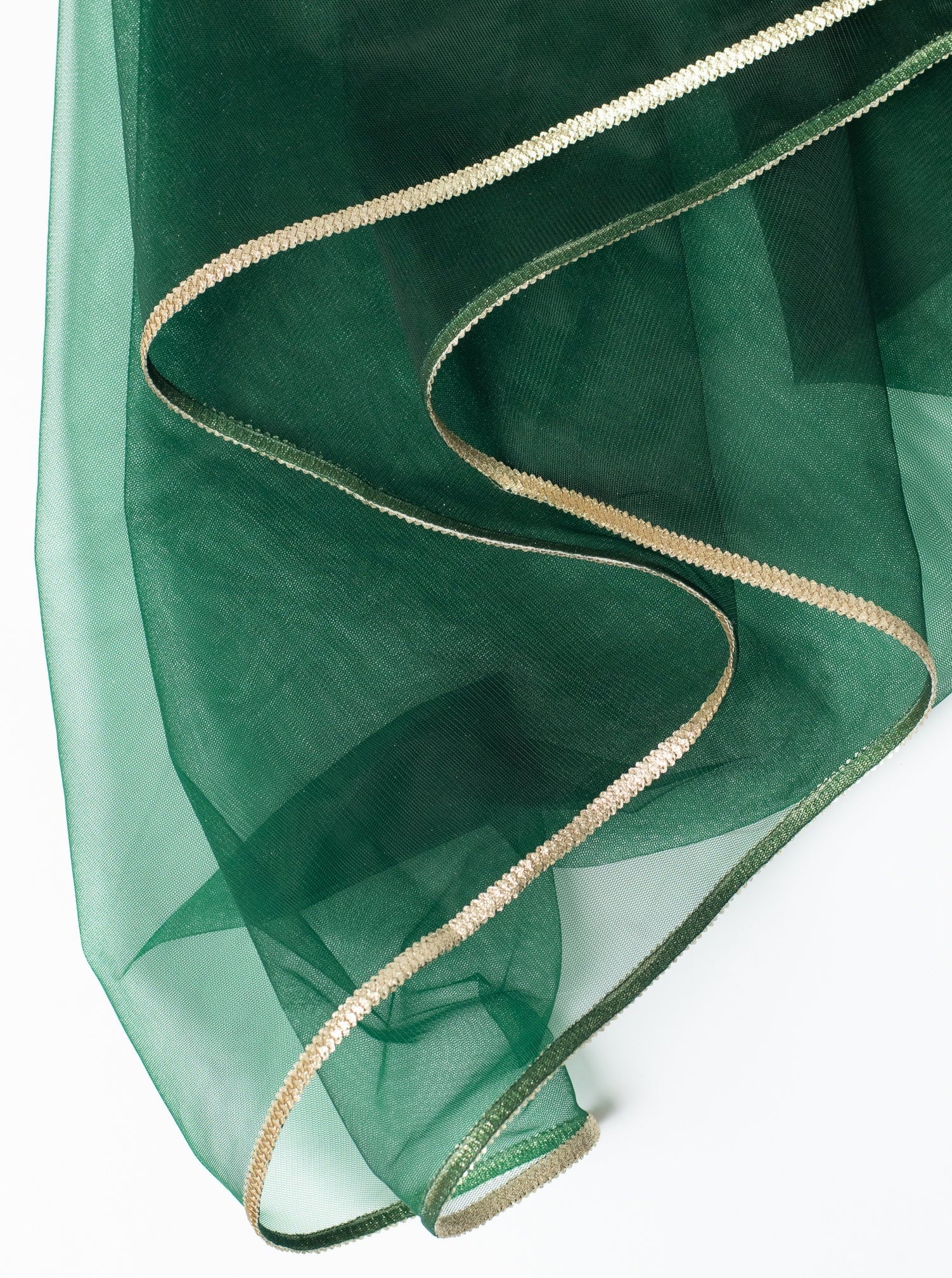 Introducing our Classic Emerald Dupatta, made from a soft net in a timeless emerald color. This versatile dupatta is a capsule addition to your wardrobe, with its lightweight design and classic style that can be re-worn with many different outfits. The sequins gold border adds the perfect touch of detail.