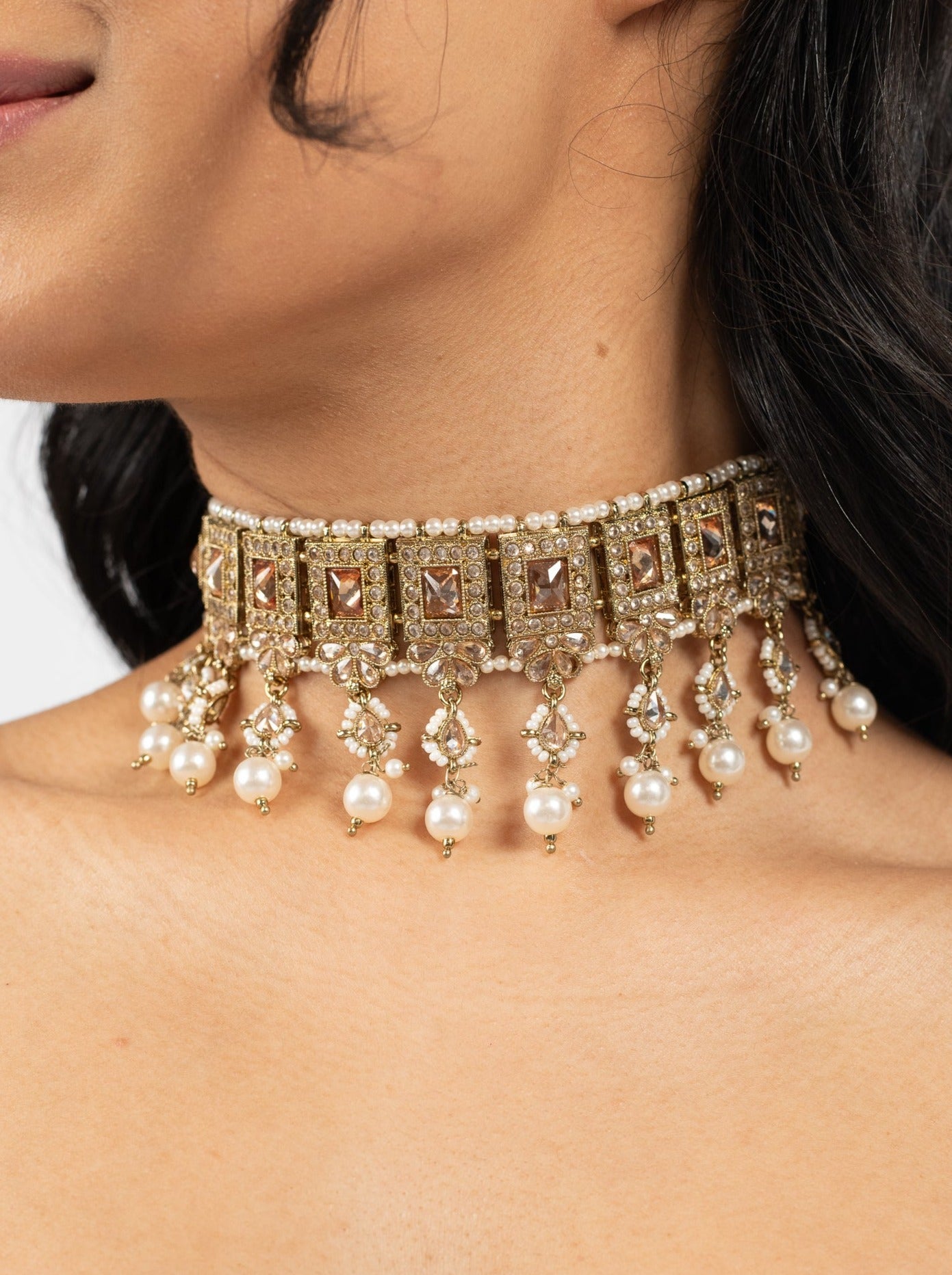 Jewelry Collection. Adjustable Choker. Cream & Champagne Stone Work.