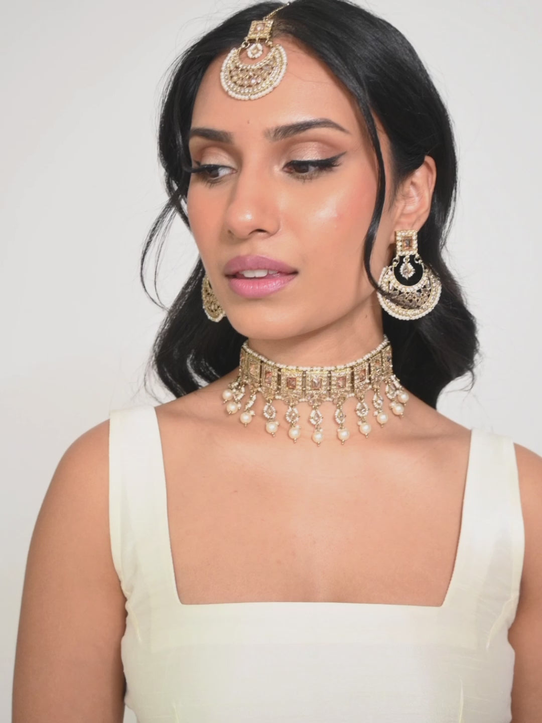 Jewelry Collection. Tikka and Earrings. Cream & Champagne Stone Work.