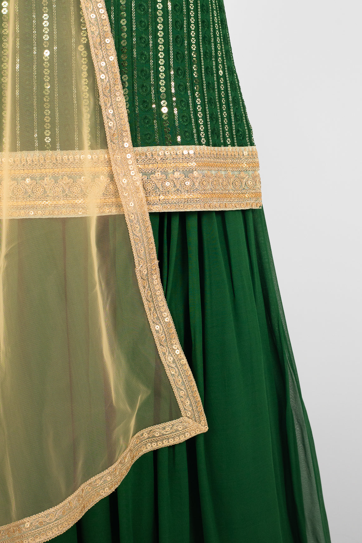 Discover timeless elegance with the Emerald Amethyst Suit, a beautiful fusion of classic style and modern comfort. Made from soft georgette fabric, this suit is as comfortable as it is luxurious, making it perfect for long ceremonies or events.