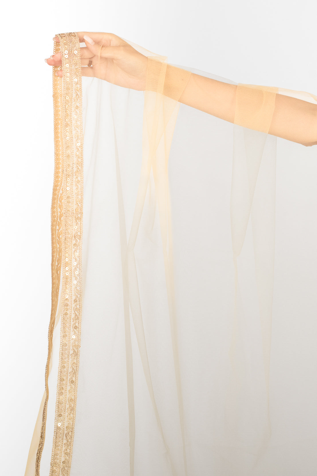 Sharara. Georgette Composition. Threadwork Embroidery. Gold Border Detailing. Dupatta Included.