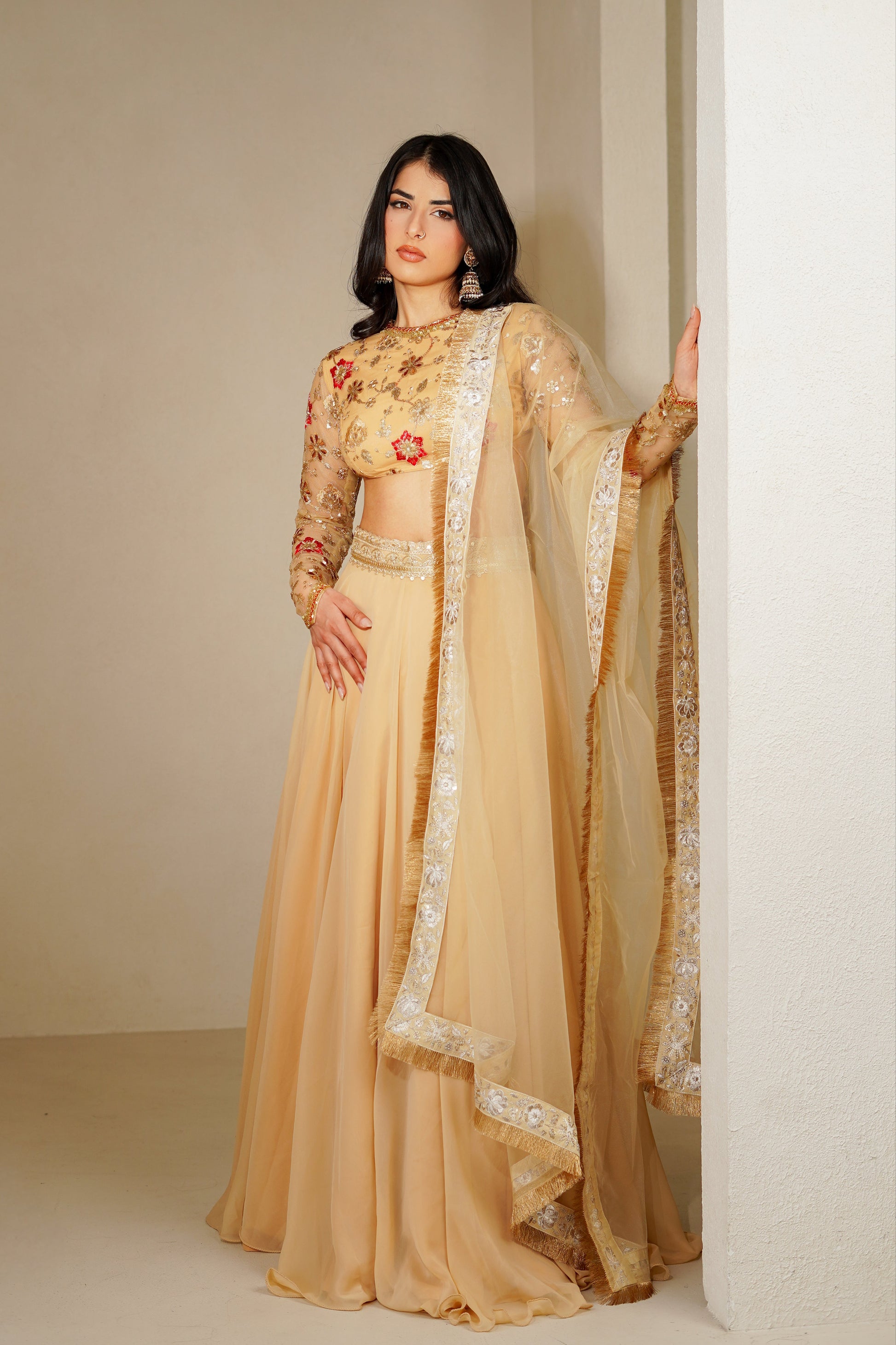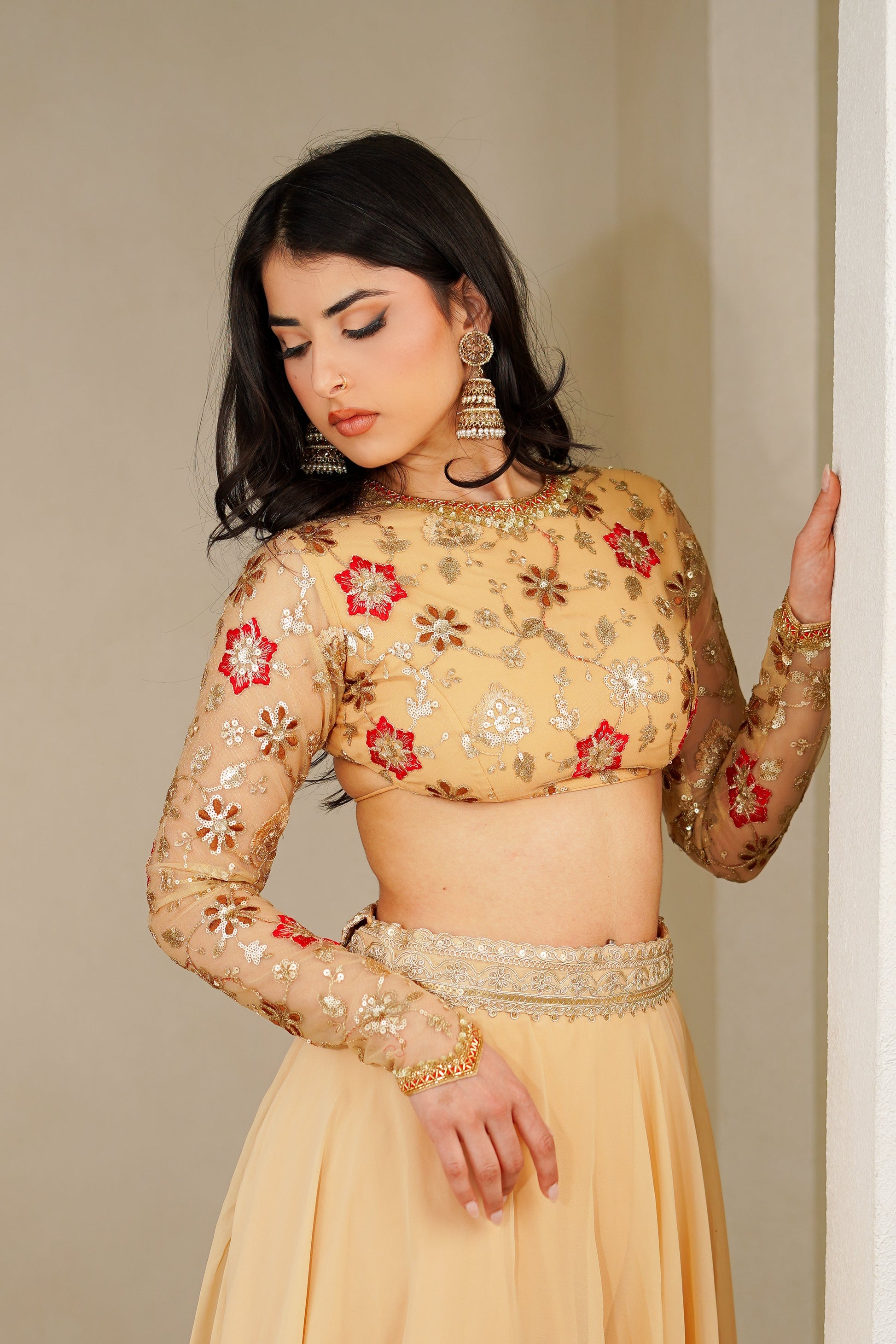 High-Neck. High-Back w/ Dori. Long Sleeves. Embroidered Net Fabric Composition. Handwork Detailing.