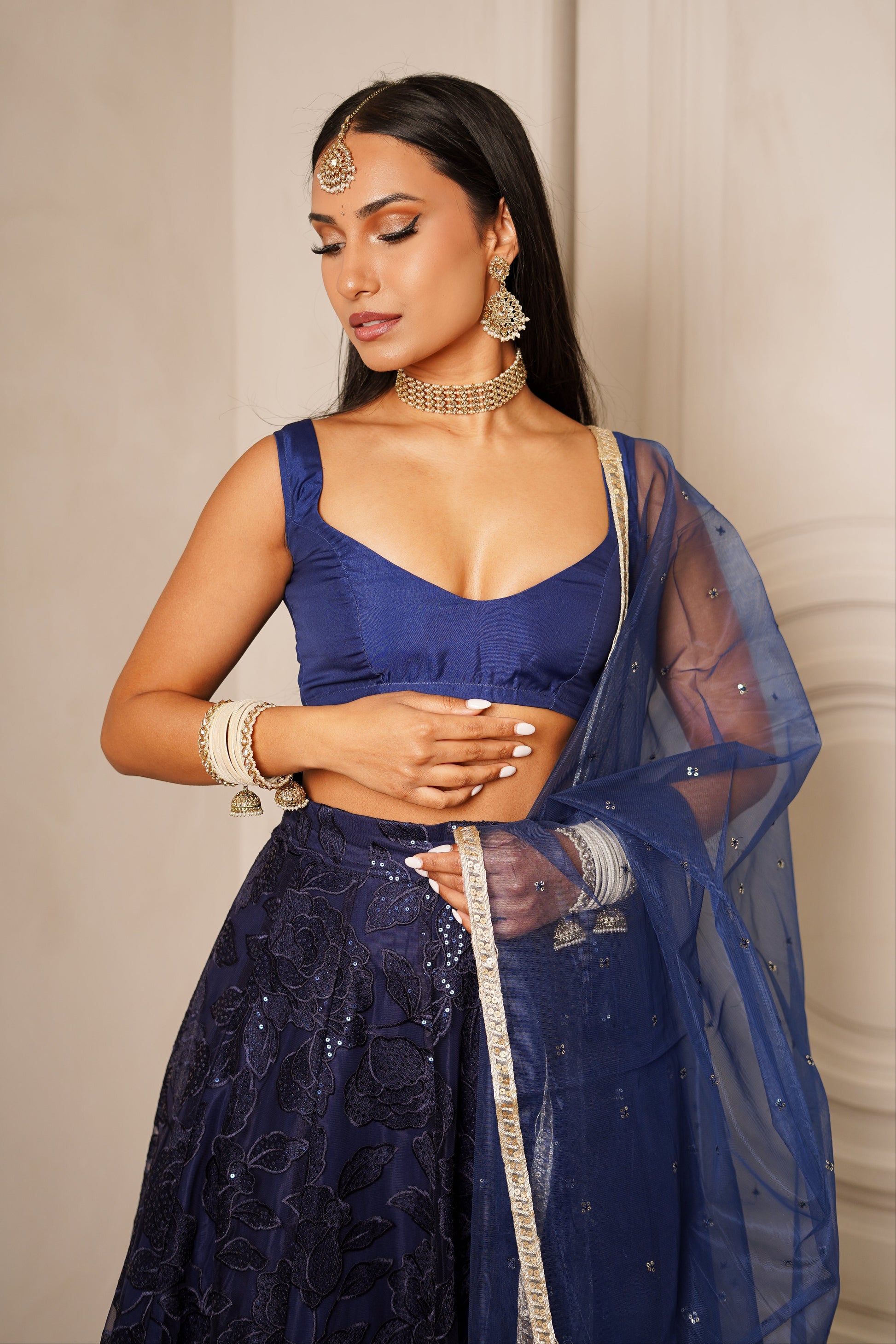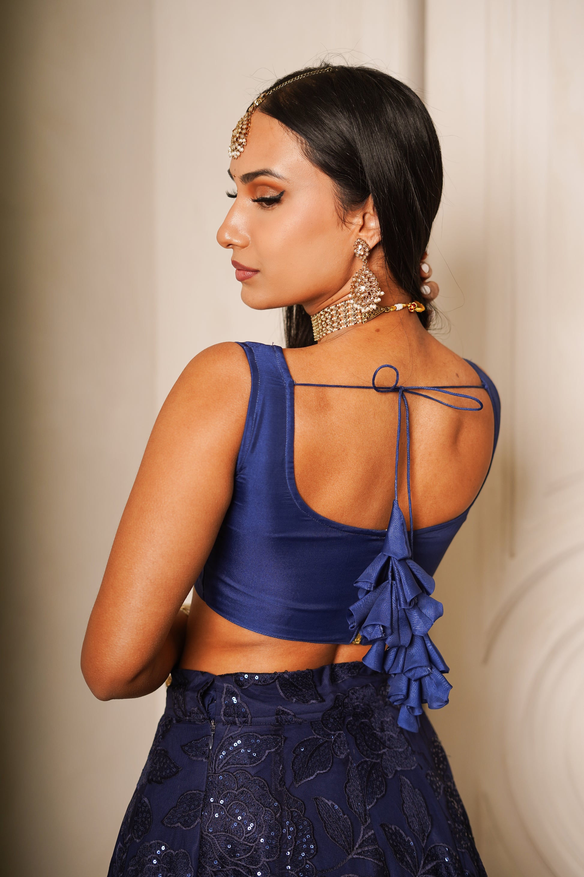 Elevate your wardrobe with The Adore Blouse, where timeless elegance meets cutting-edge design. Crafted from luxe organza, this blouse redefines style with its sleek V-cut neckline and modern silhouette. The micro length enhances its chic, modern appeal, making it perfect for styling with a flowing skirt or a stunning saree. This blouse features a stunning back dori tie detailing for a timeless traditional touch. Effortlessly versatile and undeniably stylish, The Adore Blouse is the statement piece you need to elevate any look.