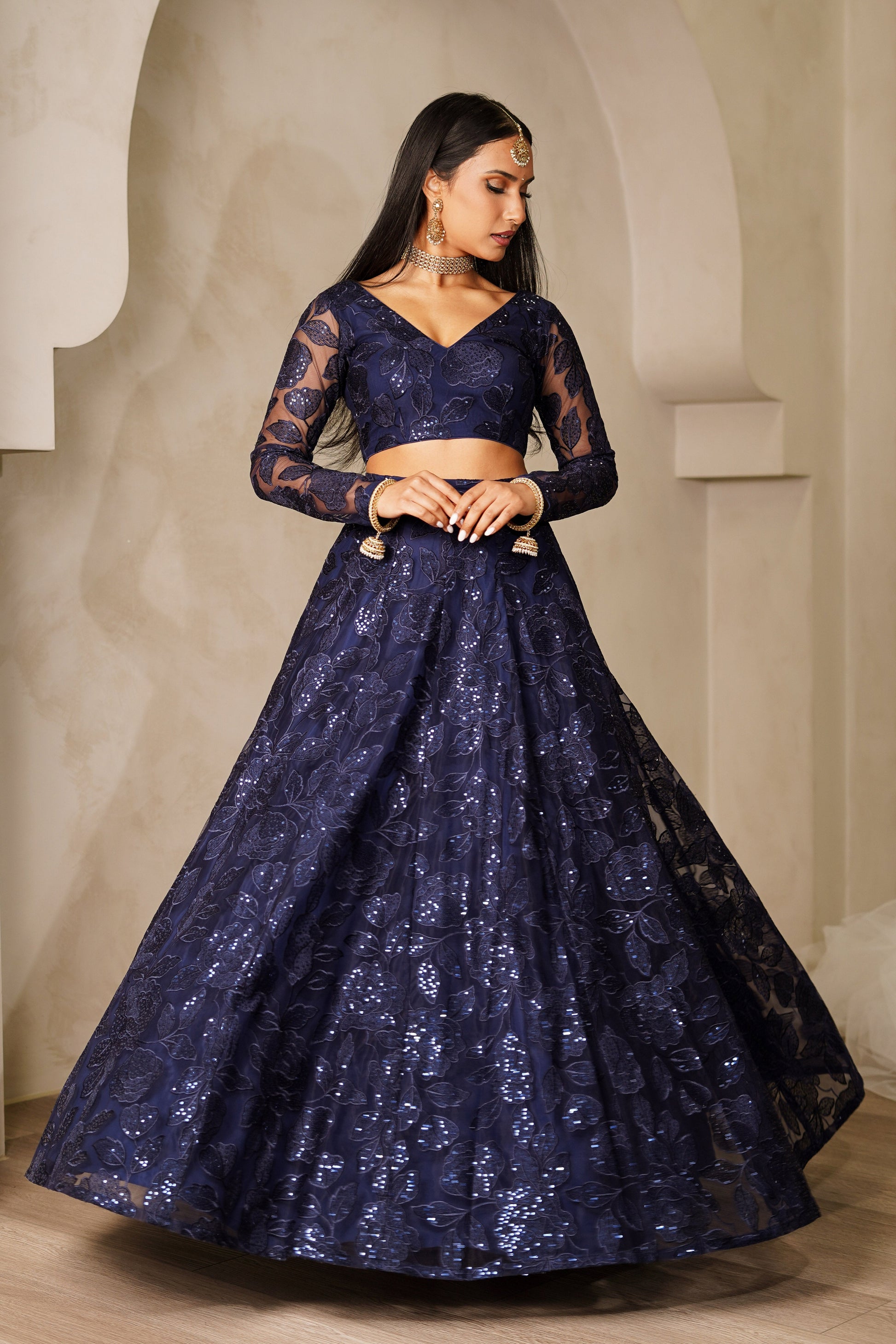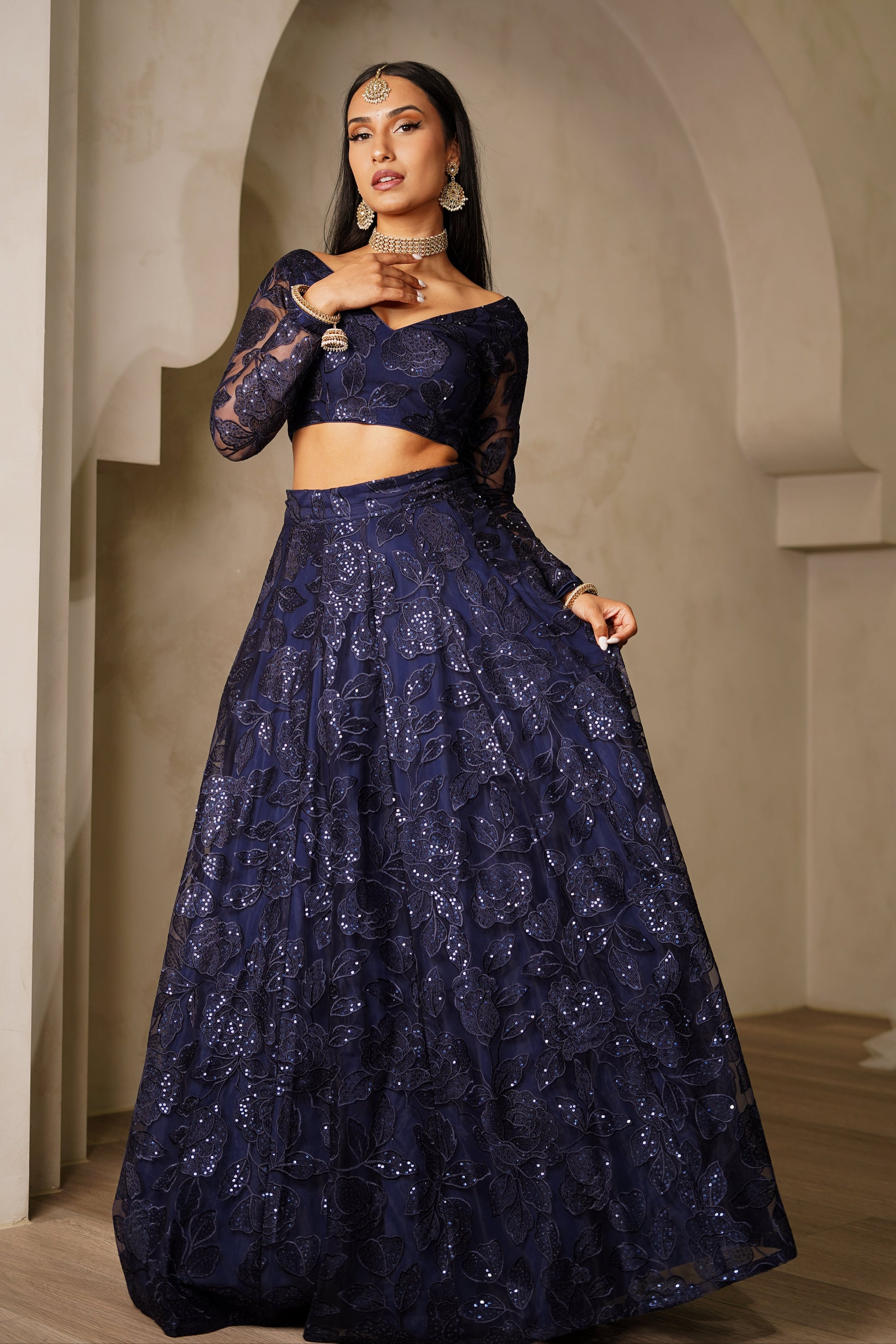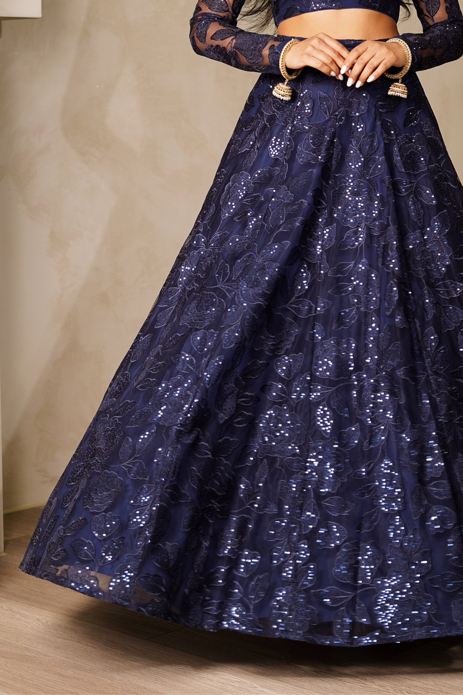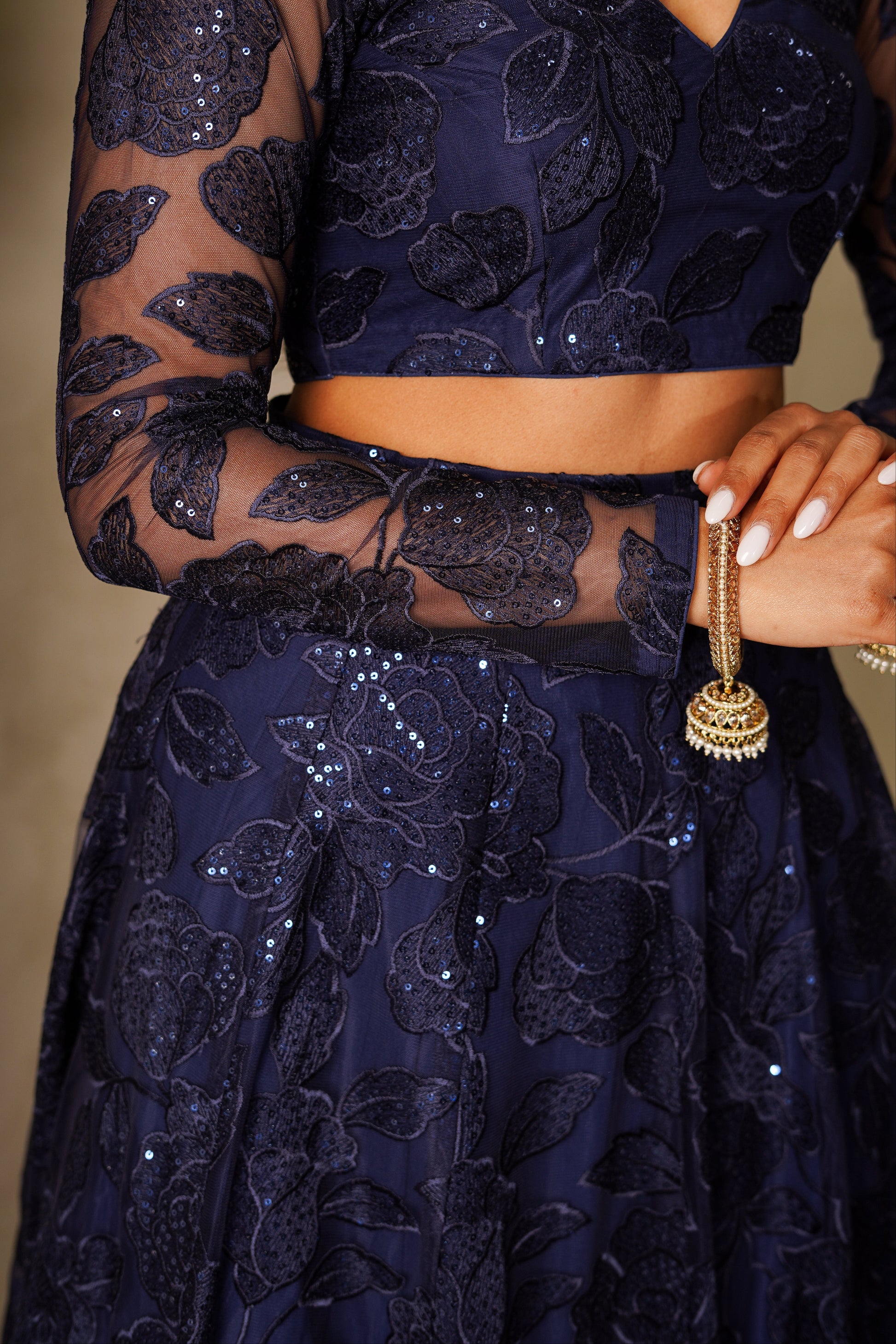 The Navy Flora Skirt is effortlessly elegant, making it perfect for a reception. Crafted from luxurious net fabric, it's adorned with delicate threadwork that adds just the right amount of charm, ensuring you'll make a statement wherever you go.