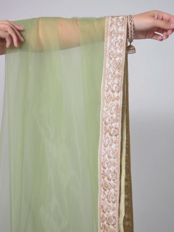 Introducing our Heer Dupattas, a must-have accessory to elevate your outfits! These beautiful dupattas seamlessly blend lightweight comfort with traditional elegance. Crafted from a net fabric, each dupatta features a stunning traditional border that adds a touch of timeless charm to your outfit. Despite their airy feel, these dupattas are designed to make a statement, effortlessly enhancing your look with their intricate detailing.