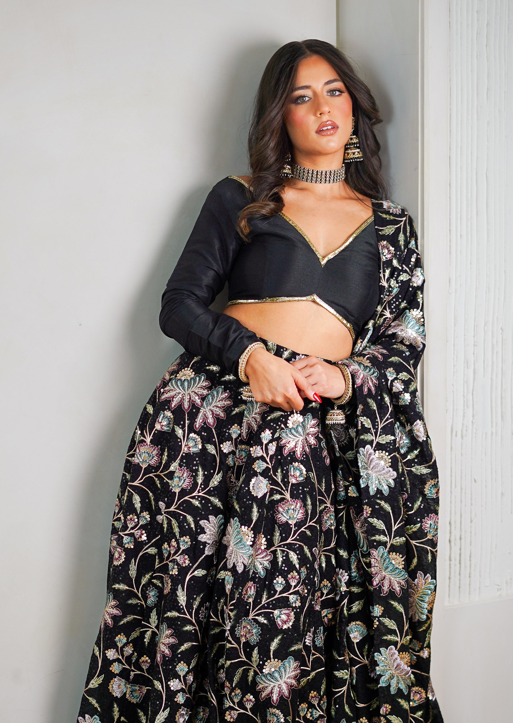 Butterfly Cut. U-Back. Long Sleeve. Silk Composition. Handwork Embroidery.