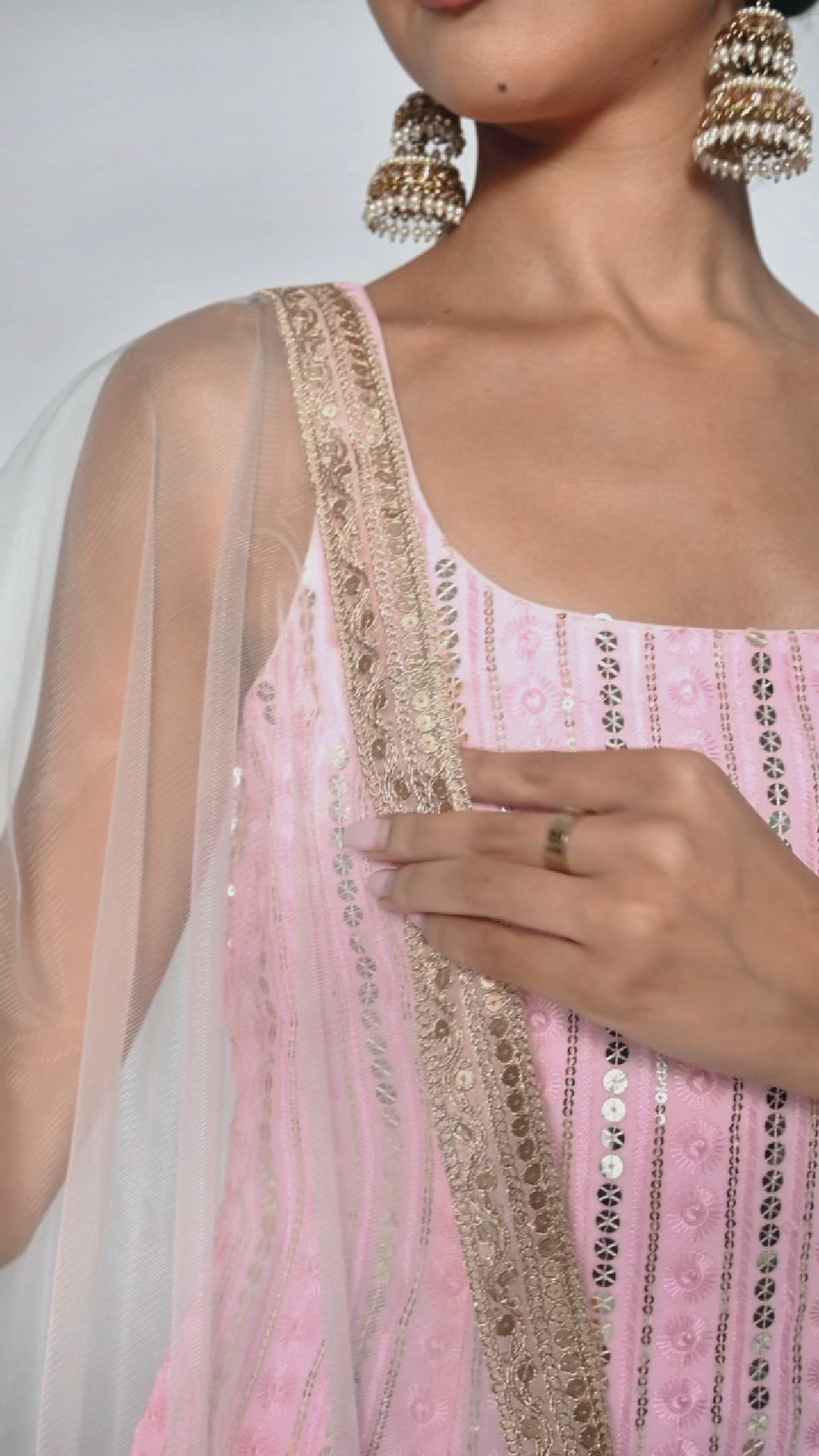 Discover timeless elegance with the Pink Amethyst Suit, a beautiful fusion of classic style and modern comfort. Made from soft georgette fabric, this suit is as comfortable as it is luxurious, making it perfect for long ceremonies or events.