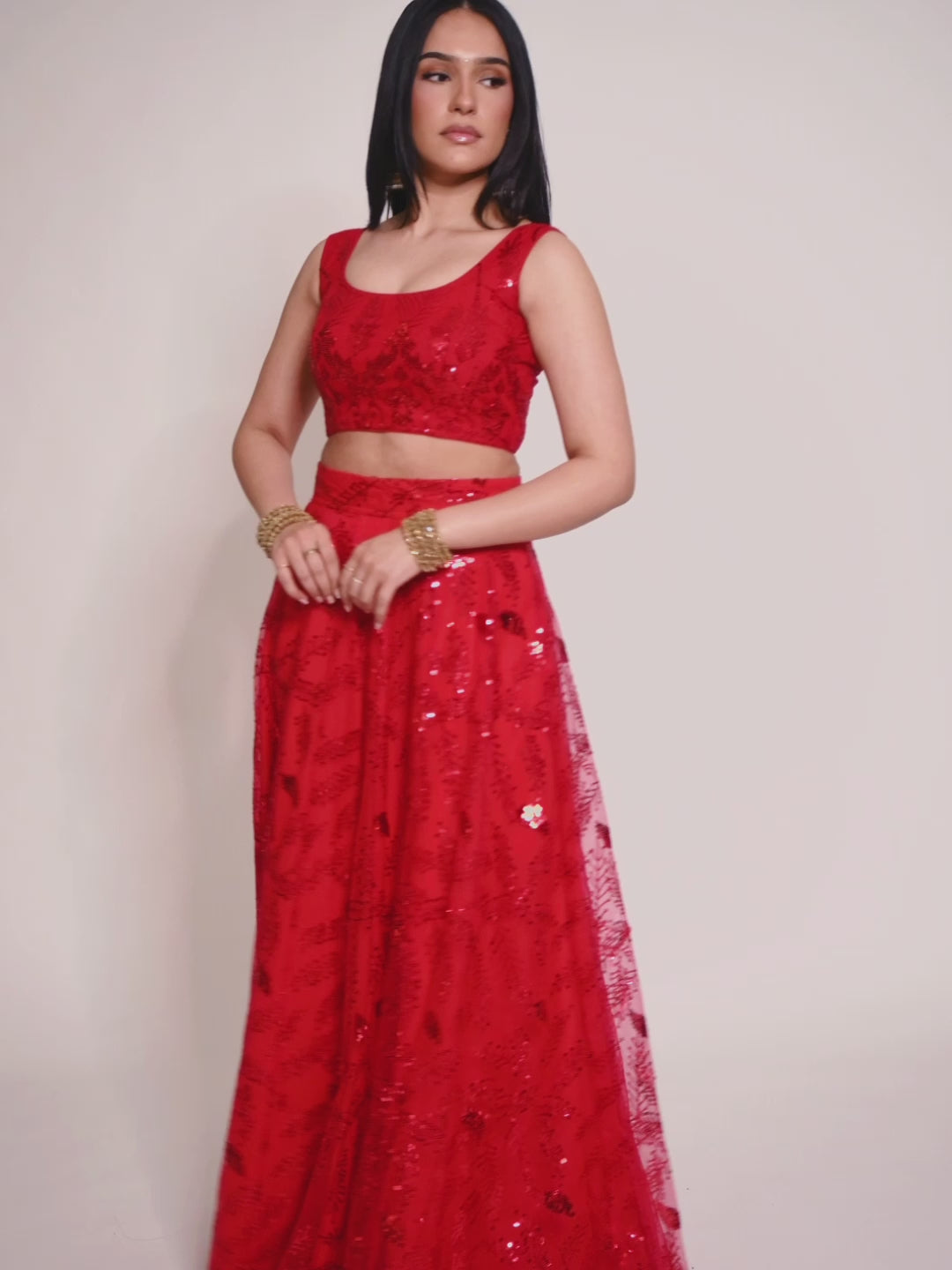 “I’m in love with our Red Quill Skirt! With its quill feather outlined sequins embroidery it adds just the right amount of detail to your look.” - Sofi Kassam, Co-Founder & Designer