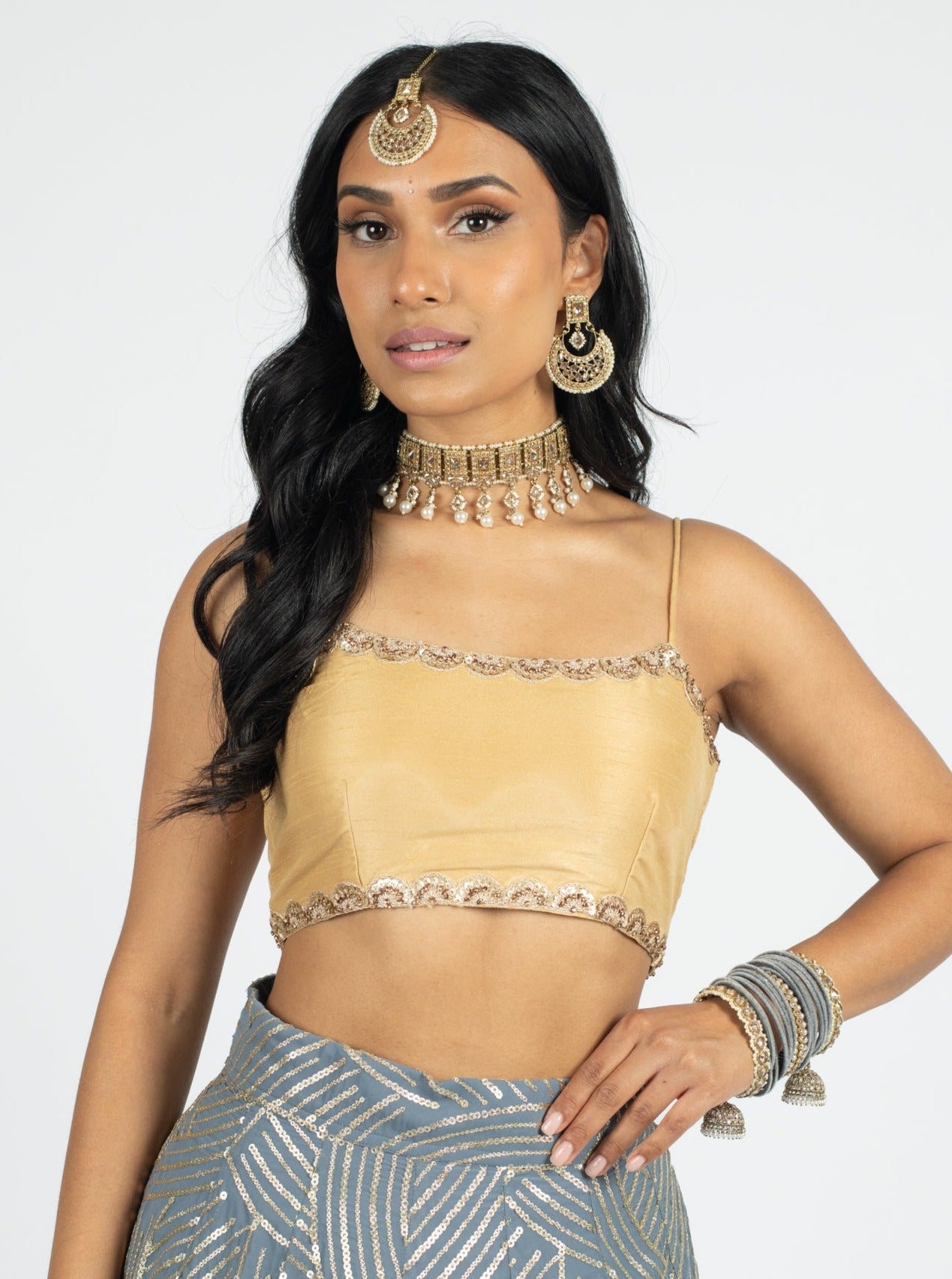 Designed for convenience and elegance, our pre-pleated saree includes four sizing hooks and is available in two size options (XXS-M and M-XXL). The length of the saree is 45" and includes a 3" fall on the pallu, and a sewn-in butter-crepe lining for optimal comfort.