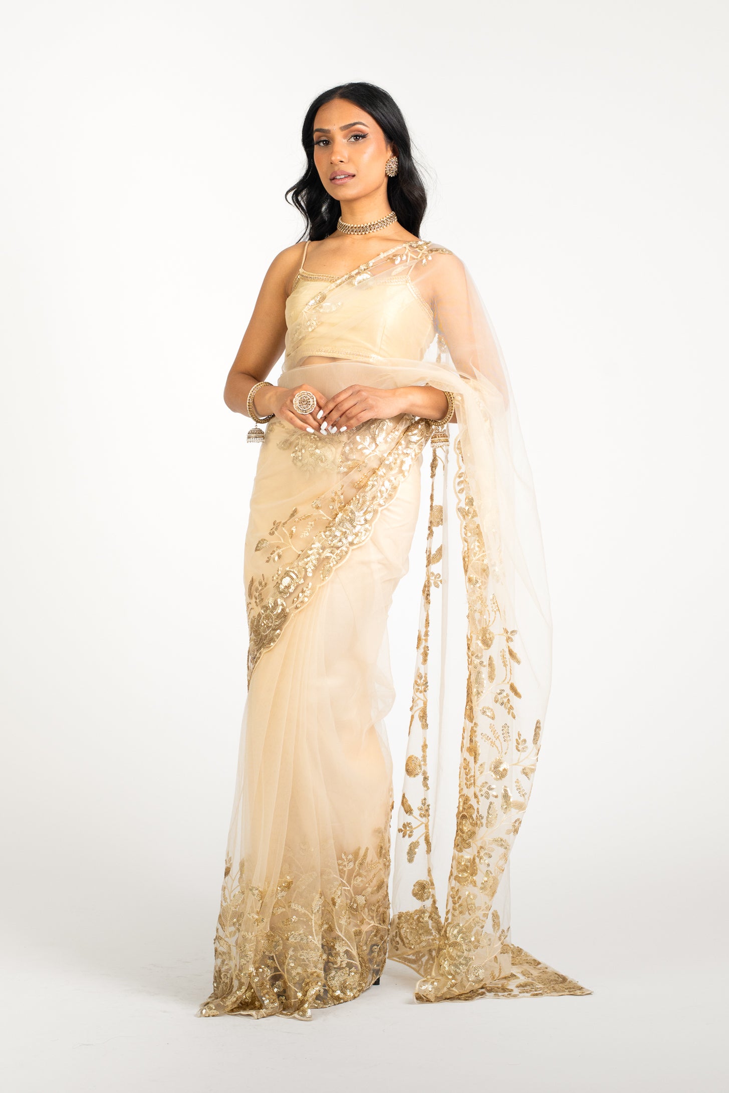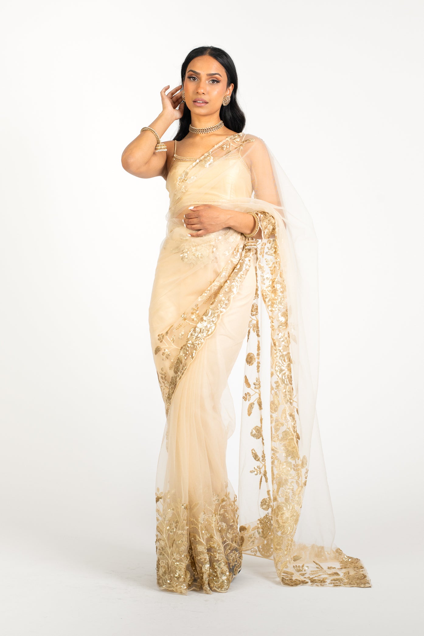 "Opulence netted sarees: A saree where the beauty of your blouse still shines through the elegant netted fabric." - Sofi Kassam, Co-Founder & Designer