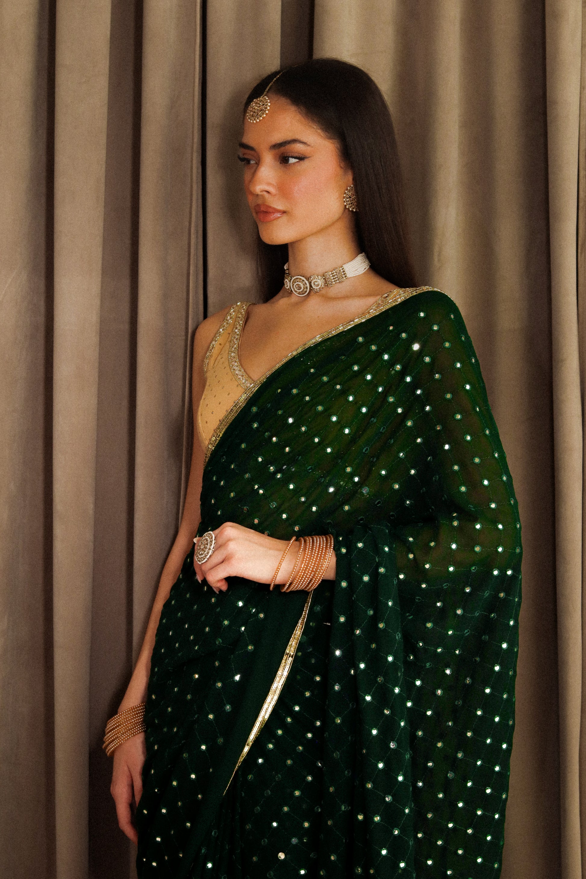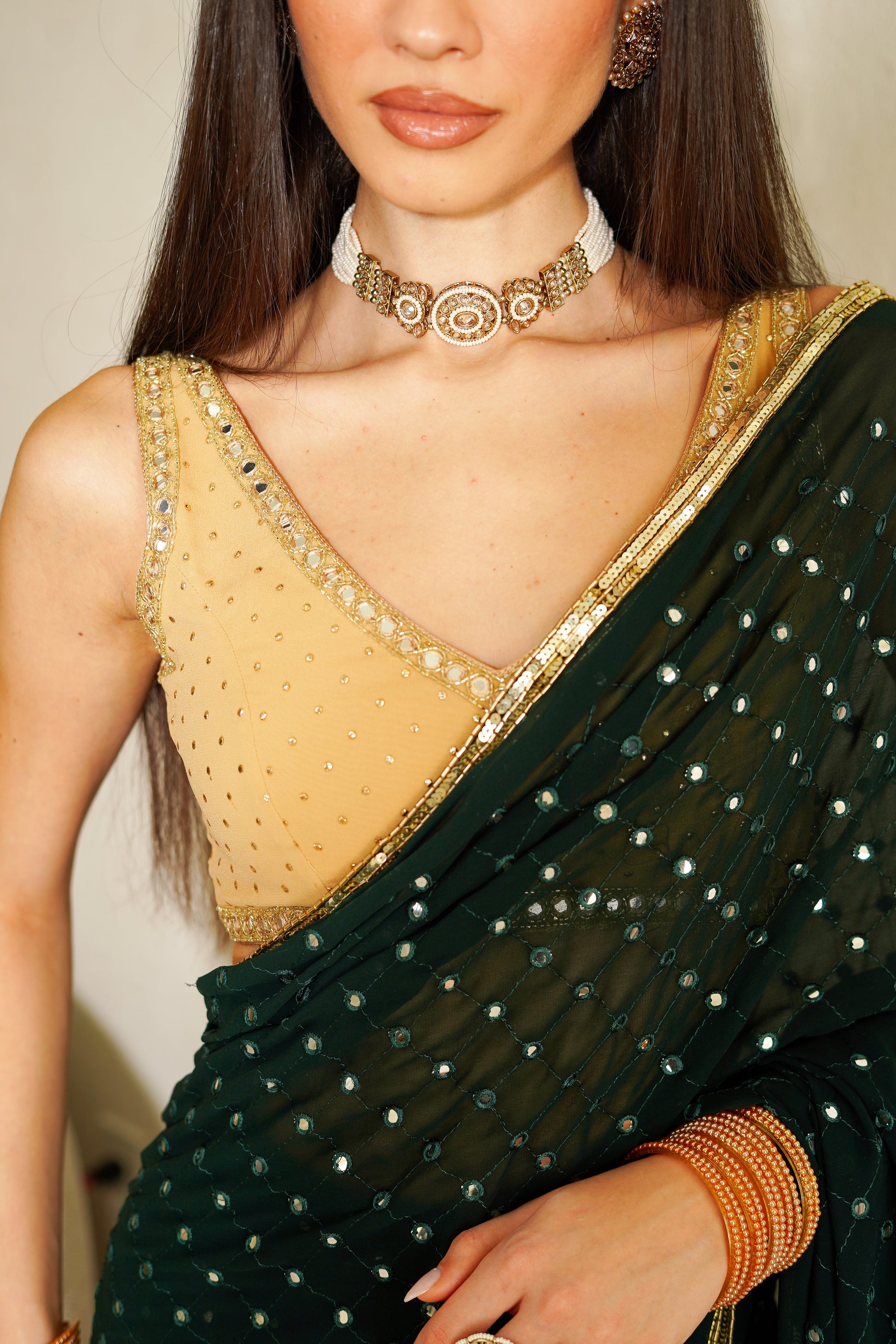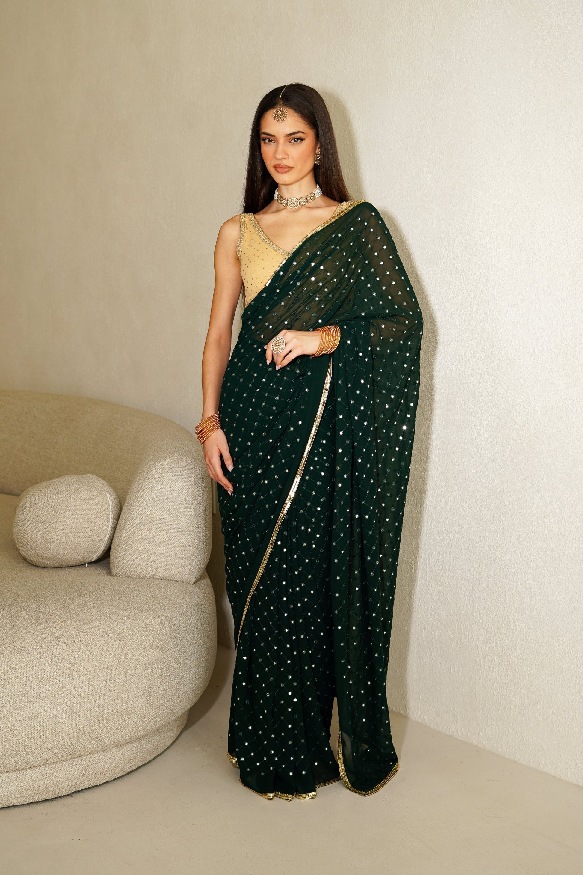 The Sierra Cactus Saree is a timeless favorite, back by popular demand after years of being adored by our customers. This stunning mirror-work saree is beautifully complemented by a sequins border that adds just the right amount of sparkle. Crafted from soft, breathable georgette fabric, it drapes gracefully, ensuring comfort without compromising on style. Whether you're attending a special occasion or making a statement at a party, The Sierra Cactus Saree promises to leave you feeling classy and effortlessly elegant. A true wardrobe essential that combines tradition and modern allure.