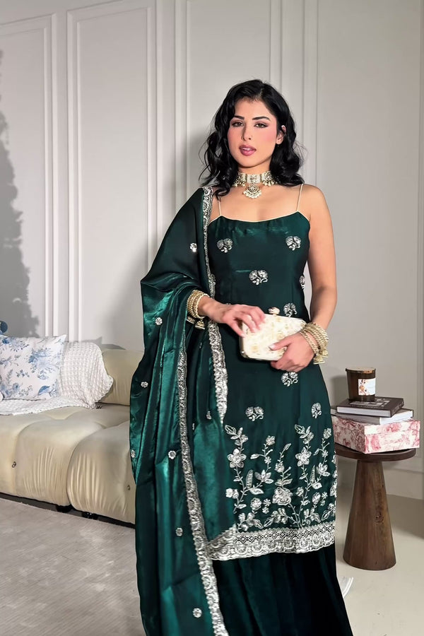 Teal Jardin Suit and Dupatta